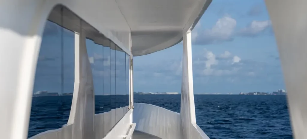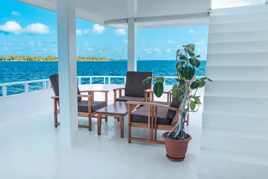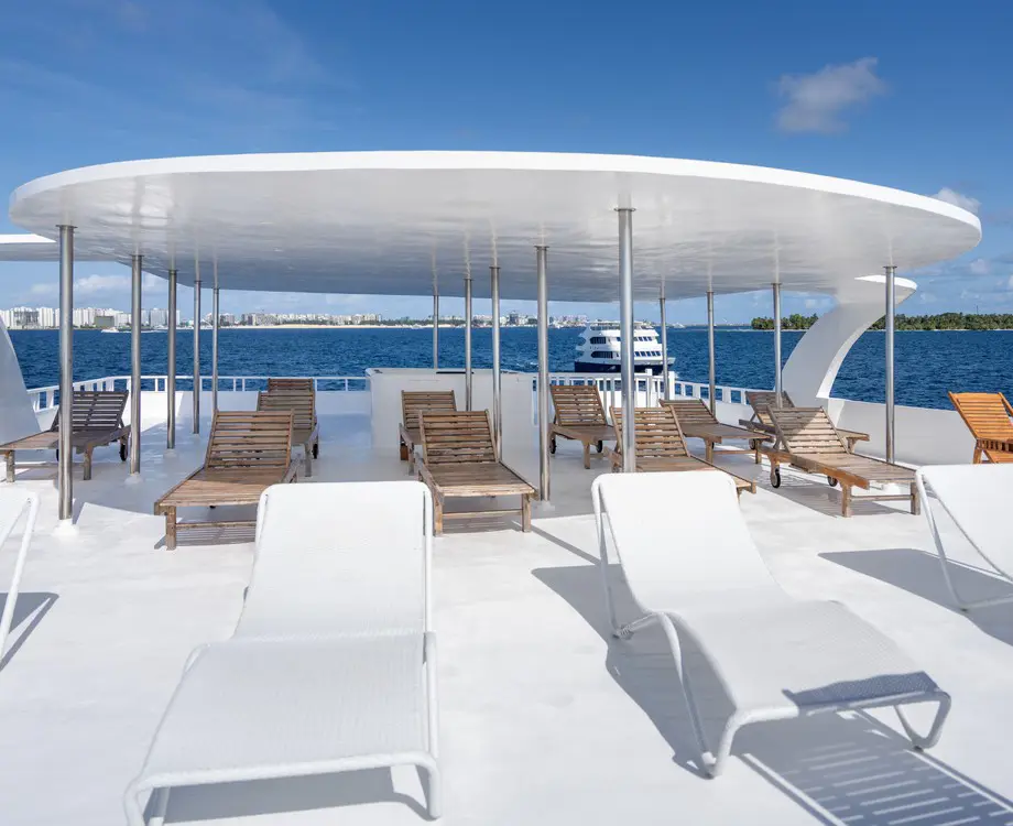 The semi-shaded sun deck offers the perfect blend of relaxation and luxury, featuring a soothing jacuzzi and plush sunbeds ideal for unwinding while enjoying the breathtaking views of the Maldivian horizon.